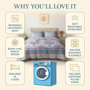 DaDa Bedding Bohemian Summertime White Blue Floral Paisley Bedspread Set (KSX-003)