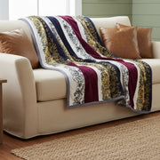 A Masterpiece of Ornate Design This is more than just a blanket; it's a piece of art for your home. The stunning design features elegant horizontal stripes filled with ornate floral carnations in rich shades of burgundy, deep navy, and crisp white. This intricate pattern, reminiscent of traditional damask and bohemian paisley styles, is beautifully framed by a bold lavender border, creating a visually captivating piece that complements a wide range of home décor, from modern to classic farmhouse.