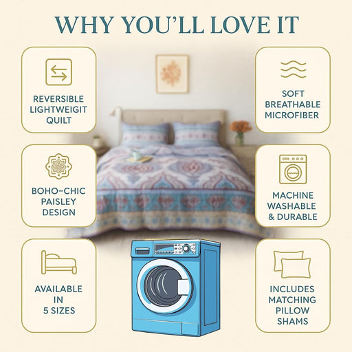 Dream softly with our boho paisley dreams patchwork quilted bedspread for a fresh new look added to your bedroom. Accented with floral paisley patc...