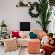DaDa Bedding Heart Pillows Decorative Throw Pillows - Neutral Champagne Beige Heart Shaped Throw Toss Lap Fluffy Faux Fur Sherpa Pillows (16x14)