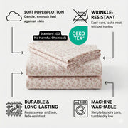 - Romantic Dainty Floral Roses Design: This poplin cotton sheet set features a charming coquette floral pattern in soft pastel hues, adding a touch of romance to your bedroom decor.