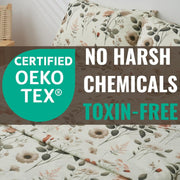 DaDalogy Enchanted Meadow Bed Sheet Set - Floral Harmony in Beige, Rose, and Soft Green, Premium Soft Microfiber, Machine Washable, Deep Pocket 14 - 15 Inches + Flat Sheet